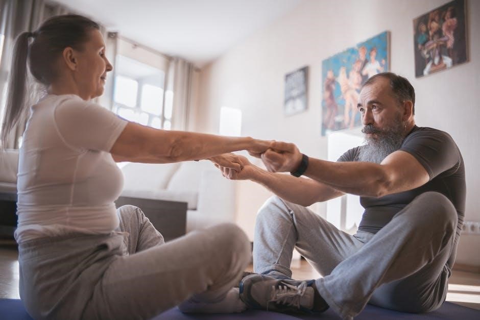 However, listen to your body and avoid pushing through pain. PDF resources often recommend starting with shorter durations and gradually increasing as your flexibility improves. Consistency is key; regular stretching, even for short periods, is more effective than infrequent, intense sessions. Adjust the routine based on your response and consult a healthcare professional for personalized guidance.